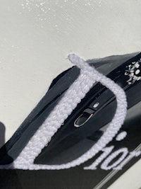 This painting was my first black and white painting featuring “Dior” being hand-stitched. The hand stitching alone took about 36hrs!