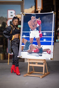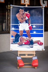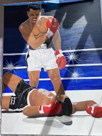 Inspired by Muhammad Ali’s iconic photo with masked resin only covering the two figures and a handmade 3D ring surrounding the canvas. This took a little over two months of work!